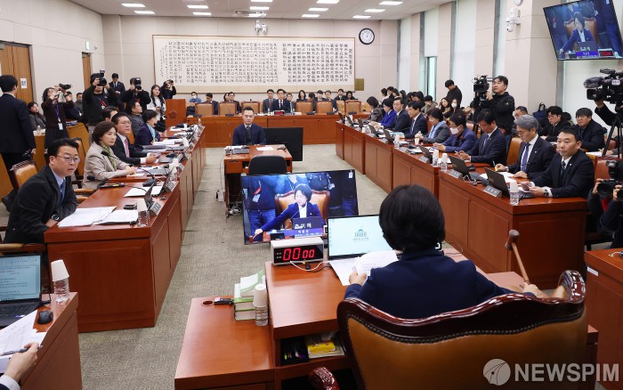 [서울=뉴스핌] 정일구 기자 = 24일 서울 여의도 국회에서 열린 법제사법위원회 전체회의에서 추미애 위원장이 의사봉을 두드리고 있다. 2026.02.24 mironj19@newspim.com |