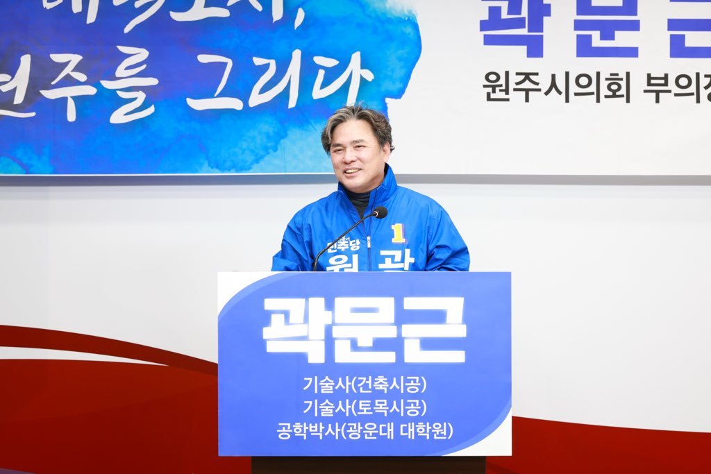 곽문근 예비후보는 대형건설그룹 임원과 건설사 사장을 지낸 이력, 2개 기술사와 공학박사 학위를 갖춘 점 등을 언급하며 "원주 도시기반 대전환을 말이 아니라 실행으로 증명하겠다"고 자신감을 드러냈다.