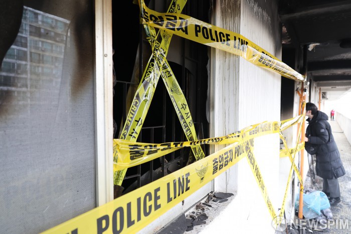 [서울=뉴스핌] 이형석 기자 = 24일 서울 강남구 은마아파트에서 화재가 발생해 출입이 통제되고 있다. 화재로 1명이 사망하고 3명이 부상을 입었다. 2026.02.24 leehs@newspim.com |