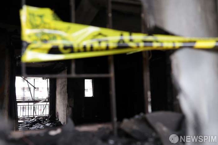 [서울=뉴스핌] 이형석 기자 = 24일 서울 강남구 은마아파트에서 화재가 발생해 출입이 통제되고 있다. 화재로 1명이 사망하고 3명이 부상을 입었다. 2026.02.24 leehs@newspim.com |