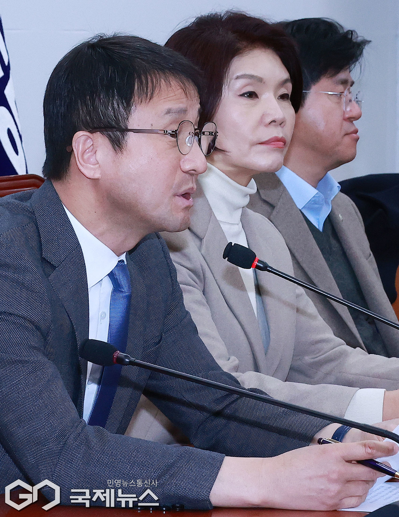 (서울=국제뉴스) 국회 법제사법위원회 국민의힘 위원들이 24일 서울 여의도 국회에서 법사위 상황 관련 기자회견을 하고 있다./사진=이용우 기자