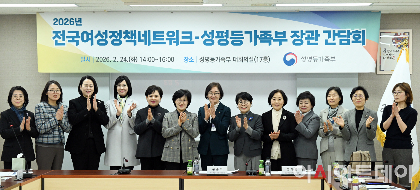 아시아투데이 박성일 기자 = 원민경 성평등가족부 장관이 24일 오후 서울 종로구 정부서울청사에서 열린 전국여성정책네트워크 간담회에 참석해 간담회전 기념촬영을 하고 있다.