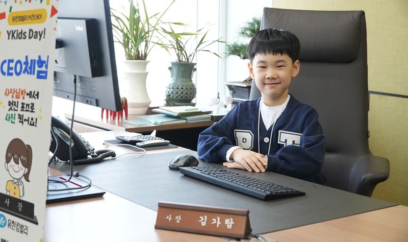 유한킴벌리는 2023년부터 사원 가족을 대상으로 초청 프로그램을 운영하고 있다. 아이들은 본인 얼굴이 새겨진 사원증을 착용하고 부모님 일터를 직접 체험했다.
