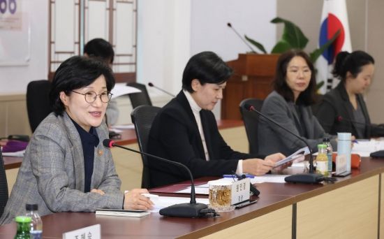 원민경 성평등가족부 장관이 24일 서울 종로구 정부서울청사에서 열린 전국여성정책네트워크와 간담회에 참석해 발언하고 있다.