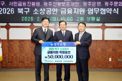 한편, 광주은행은 북구 소재 저신용·저소득 소상공인을 대상으로 서민금융 신규대출(포용금융특별대출, 햇살론일반, 햇살론특례, KJB새희망홀씨Ⅱ)을 지원한다.