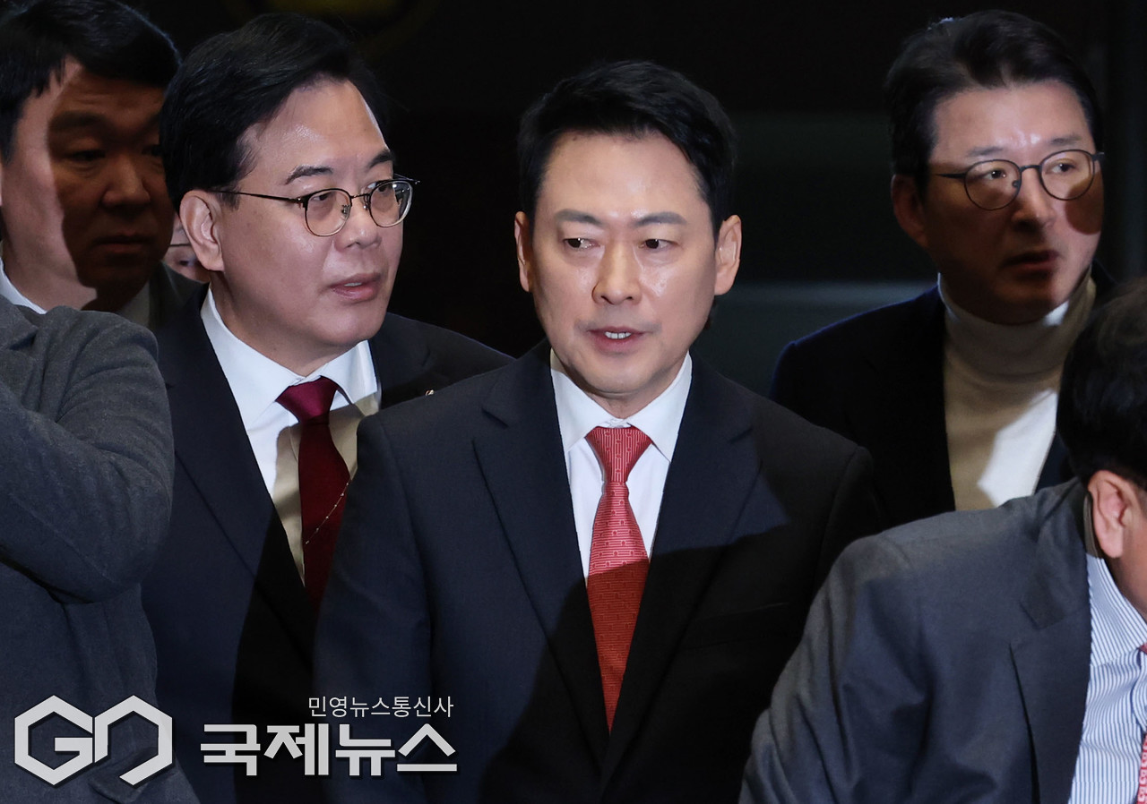 (서울=국제뉴스) 장동혁 국민의힘 대표가 24일 오전 서울 여의도 국회에서 열린 의원총회에 참석하고 있다./사진=이용우 기자