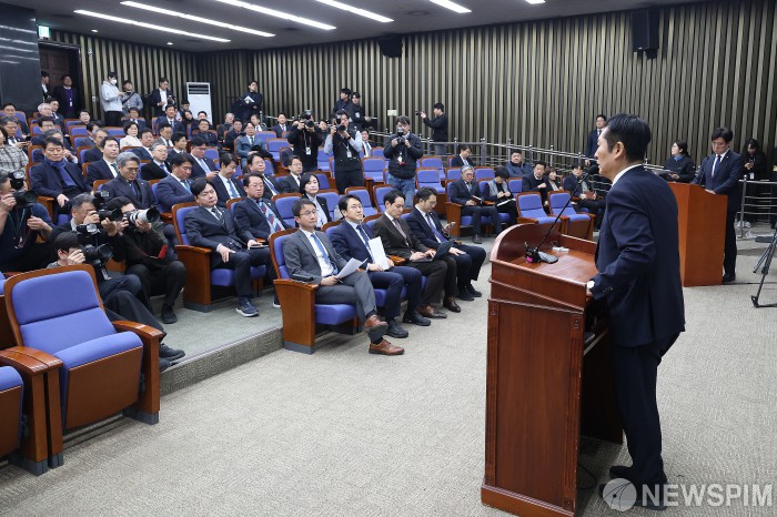 [서울=뉴스핌] 정일구 기자 = 정청래 더불어민주당 대표와 한병도 원내대표가 24일 오후 서울 여의도 국회에서 열린 의원총회에서 자료를 살펴보고 있다. 2026.02.24 mironj19@newspim.com