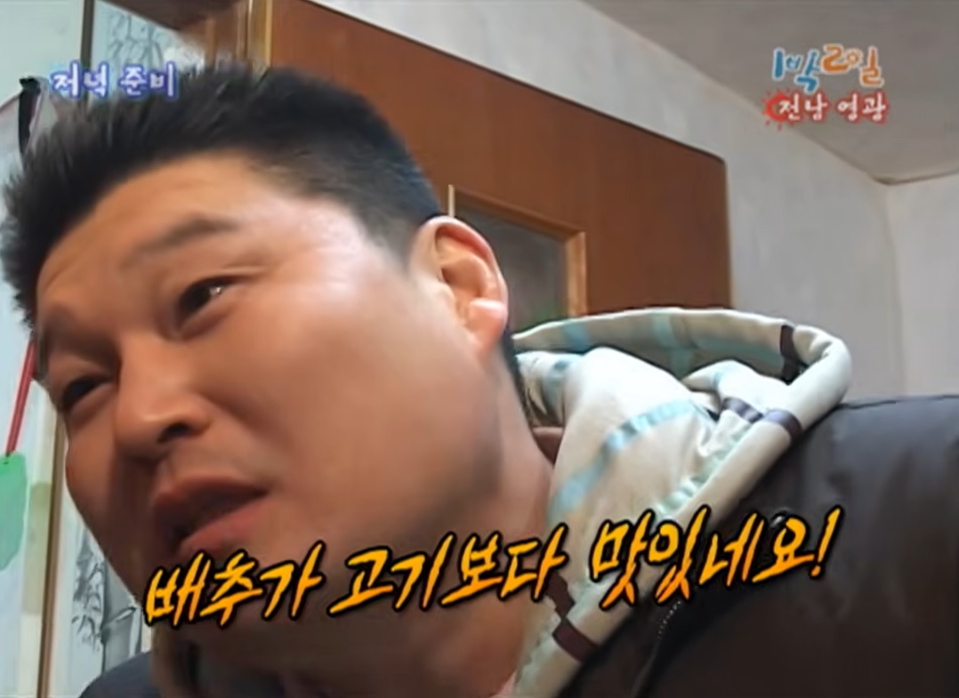 강호동이 2008년 KBS 예능프로그램 ‘1박2일’에서 봄동 비빔밥을 먹고 평하는 모습[KBS] |