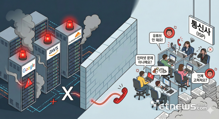 이는 글로벌 서비스 장애 때마다 반복되는 고질적 문제다. 지난해 11월 클라우드플레어의 봇 관리 오류 사태나 같은 해 10월 아마존웹서비스(AWS)의 DNS 오류로 글로벌 주요 서비스 2000여개가 마비됐을 때도 국내 통신망 장애로 오인한 소비자들의 민원은 모두 통신사로 향했다.
