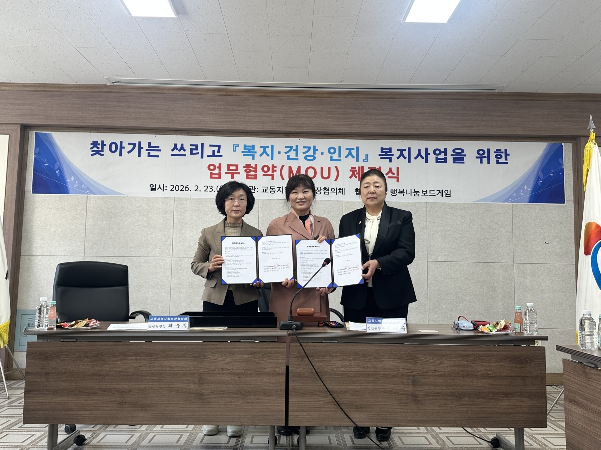 삼척 교동협의체, 보드게임 봉사단과 MOU 체결.[사진=삼척시] 2026.02.24 onemoregive@newspim.com |
