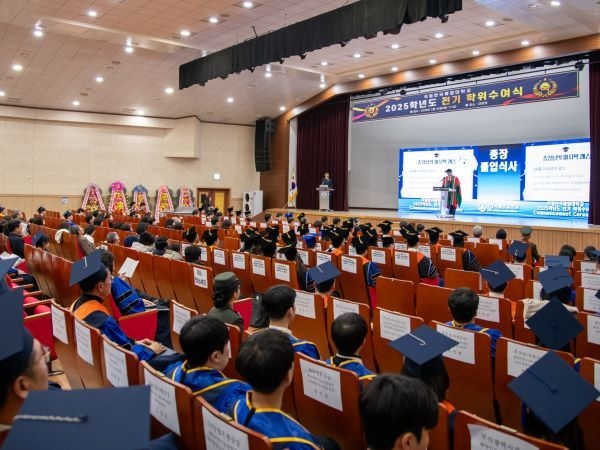 인더뉴스 제해영 기자ㅣ국립한국해양대학교는 24일 오전 교내 대강당에서 ‘2025학년도 전기 학위수여식’을 열고 총 1220명의 졸업생을 배출했다고 밝혔습니다. 이날 행사에는 졸업생과 학부모, 교직원과 내외빈 등 1500여 명이 참석해 새로운 출발선에 선 해양 인재들의 앞날을 축하했습니다.