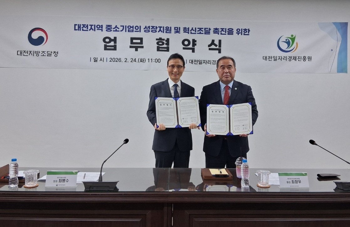 24일 열린 대전지역 중소기업의 성장지원 및 혁신조달 촉진 업무협약식. [사진=대전지방조달청] 2026.02.24 gyun507@newspim.com |