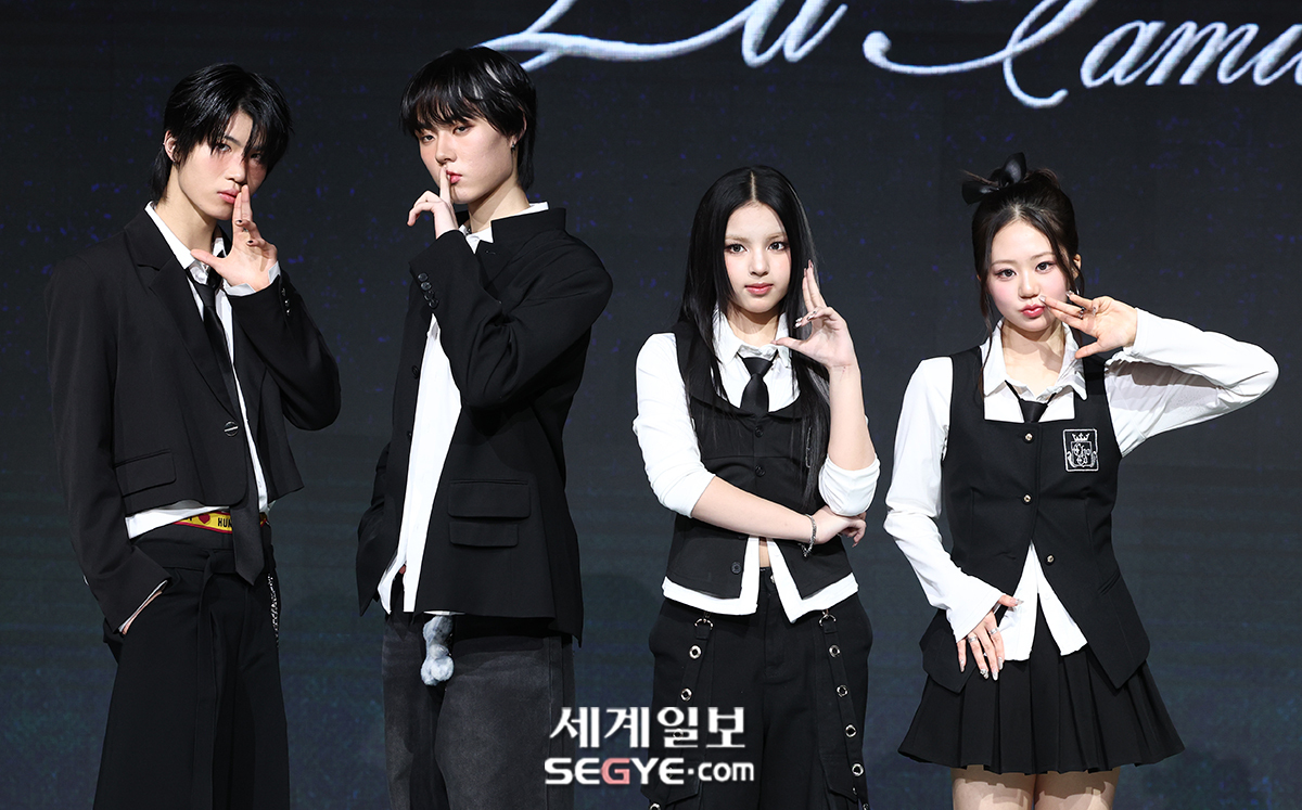 조pd표 혼성그룹 초코가 24일 서울 마포구 쇼킹케이팝센터에서 열린 첫 패밀리 앨범 ‘ChoCo La Familia(초코 라 파밀리아)’ 발매 기념 쇼케이스에 참석해 포토타임을 갖고 있다.