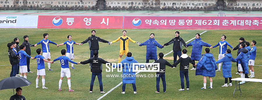 [스포티비뉴스=통영, 곽혜미 기자] '제62회 춘계대학축구연맹전' 한산대첩기 연세대와 경희대의 결승전이 24일 오후 경상남도 통영공설운동장에서 열렸다. 3-1로 우승을 한 연세대 선수들이 기뻐하고 있다.