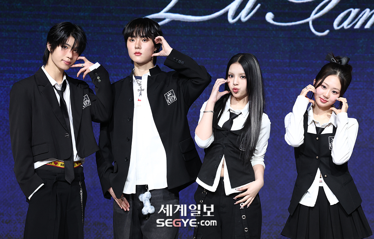 조pd표 혼성그룹 초코가 24일 서울 마포구 쇼킹케이팝센터에서 열린 첫 패밀리 앨범 ‘ChoCo La Familia(초코 라 파밀리아)’ 발매 기념 쇼케이스에 참석해 포토타임을 갖고 있다.