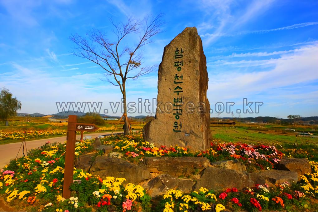 함평읍 수호리에 조성된 함평엑스포공원은 약 30만 평에 이르는 넓은 부지를 자랑한다. 2008년 나비곤충엑스포를 성공적으로 개최한 이곳은 봄에는 함평나비대축제, 가을에는 대한민국 국향대전을 개최하며 많은 방문객을 맞이한다. 공원 내에는 함평자동차극장, 주제영상관, VR 체험장, 파크골프장, 군립미술관 등 다채로운 시설이 마련되어 있다. 다육식물관, 자연생태관, 나비생태교육관 등 전시관도 풍부하며, 여름철에는 물놀이장이 한시적으로 운영된다. 공원 곳곳에 설치된 야간경관 조명이 밤이 되면 색색의 빛으로 공원을 물들여 낮과는 또 다른 매력적인 야경을 선사한다.