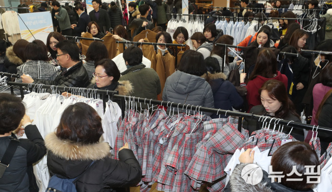 21일 서울 서대문구청에서 열린 '교복 나눔장터'를 찾은 학부모와 학생들이 교복을 고르고 있다. /김학선 기자 yooksa@ |