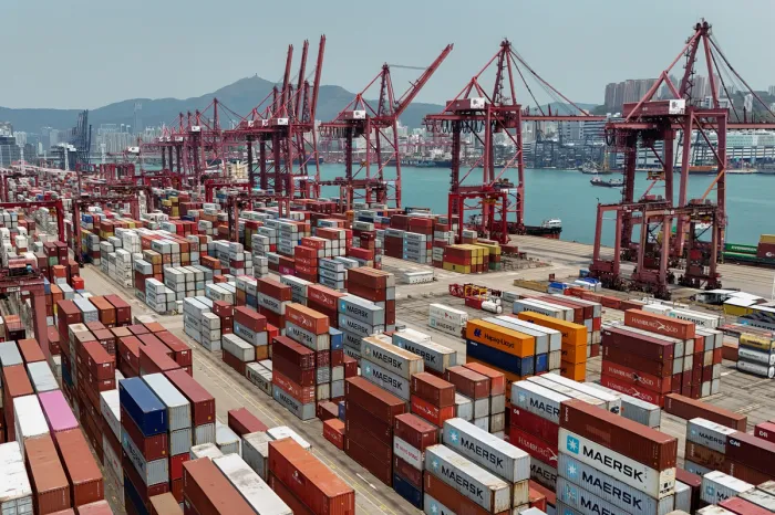 지난해 3월 홍콩 콰이청항에 컨테이너가 늘어서 있다. 로이터연합뉴스 |