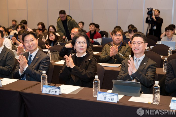 [서울=뉴스핌] 24일 오전 서울 용산구 드래곤시티호텔 한라홀에서 열린 '2026 테크-퓨처 인사이트 콘서트'에서 구혁채 과학기술정보통신부 제1차관(왼쪽부터), 최민희 국회 과학기술정보방송통신위원회 위원장,홍진배 정보통신기획평가원장이 박수 치고 있다.. [사진=과학기술정보통신부] 2026.02.24 photo@newspim.com