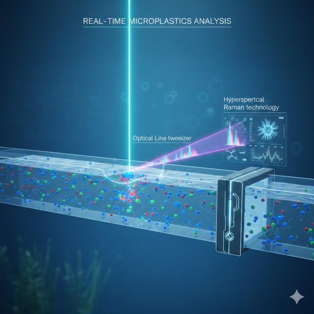 To overcome these limitations, the researchers created a specialized inspection device that combines optical line tweezer technology with hyperspectral Raman spectroscopy. The system uses a laser to trap flowing microplastic particles along a linear path. By doing so, the device can effectively filter out interference signals from the surrounding water to precisely identify the size, shape, and specific type of each plastic particle.