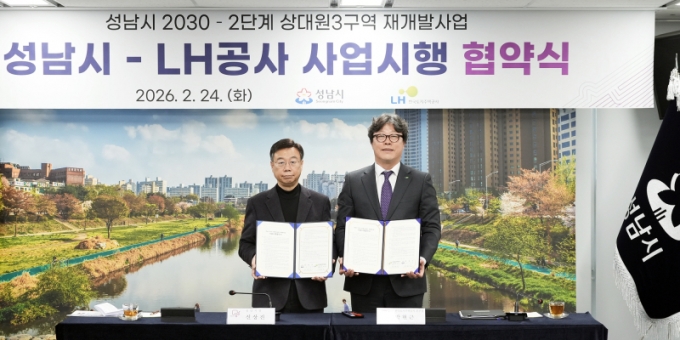 경기 성남시가 24일 한국토지주택공사(LH)와 성남 상대원3구역 재개발사업에 대한 사업시행협약을 체결했다.