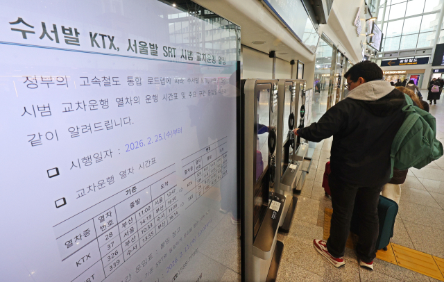 2월 25일부터 케이티엑스(KTX)는 수서역에서, 에스알티(SRT)는 서울역에서 출발하는 시범 교차운행이 시작된다. 이로써, 국민들은 더 많은 좌석과 선택권을 누릴 수 있게 될 전망이다.