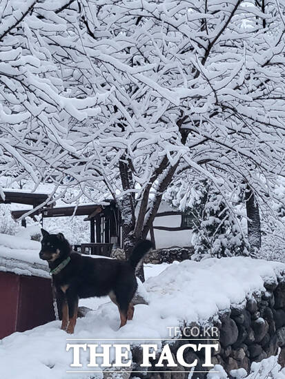 [더팩트ㅣ영주=김성권 기자] 절기상 우수(雨水)가 지난 지 닷새 만인 24일 경북 영주시 전역에 기습적인 폭설이 내리며 도심이 순식간에 하얀 설국으로 변했다.