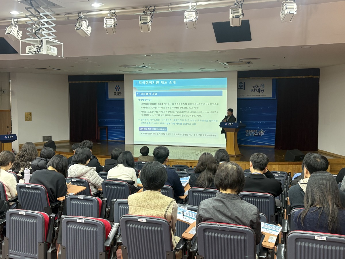 유성구청 대강당에서 적극행정 지원제도 설명회가 개최됐다. [사진=대전 유성구] 2026.02.24 jongwon3454@newspim.com |