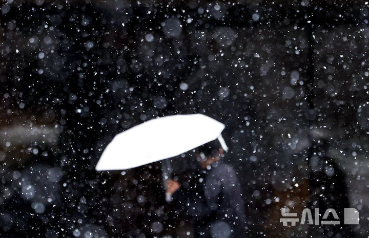 [전주=뉴시스] 김얼 기자 = 쌀쌀한 겨울 날씨가 찾아온 24일 전북 전주시 덕진구 송천동에서 시민들이 내리는 눈 사이로 길을 지나고 있다. 2026.02.24. pmkeul@newsis.com |