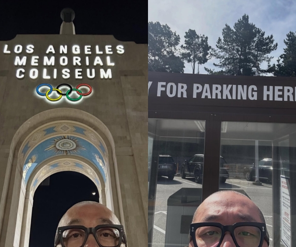 하정우는 24일 “로스 그리고 엔젤레스”라며 사진들을 공유했다. 사진 속에서 하정우는 미국 로스앤젤레스에서 관광지와 주차장에서 셀카를 찍은 모습.