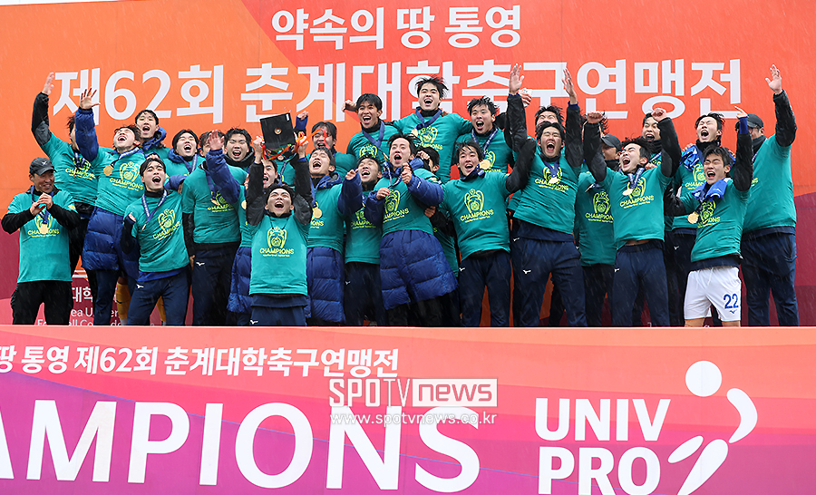 [스포티비뉴스=통영, 곽혜미 기자] '제62회 춘계대학축구연맹전' 한산대첩기 연세대와 경희대의 결승전이 24일 오후 경상남도 통영공설운동장에서 열렸다. 3-1로 우승을 한 연세대 선수들이 기뻐하고 있다.
