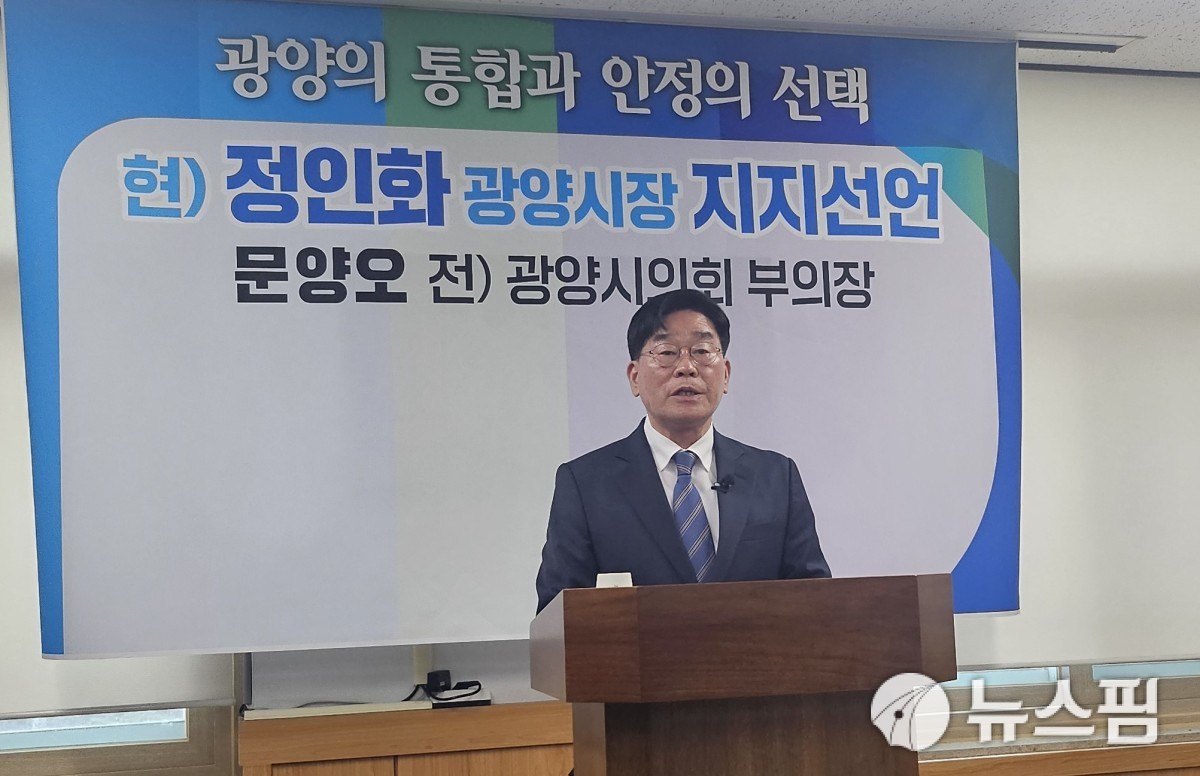 문 전 부의장은 24일 광양시청 열린홍보방에서 기자회견을 통해 "지난 1월 시장 불출마는 광양의 통합과 책임 있는 미래를 위한 결단이었다"며 "중단 없는 시정 발전과 지역 화합을 위해 정인화 현 광양시장과 뜻을 함께하기로 했다"고 밝혔다.