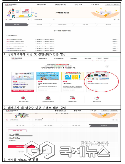 이벤트는 2월 23일부터 '강원혜택이지' 웹사이트에서 진행되며, 강원생활도민증을 발급받은 방문객이라면 누구나 참여할 수 있다. 숙박 영수증 인증 시 6만 원 이상 결제 영수증을 등록하면 3만 원 모바일 강원상품권을, 소비 영수증 인증 시 음식점·관광지 등 5만 원 이상 영수증을 등록하면 1만 원 모바일 강원상품권을 제공한다. 단, 유흥·사행 목적 소비는 제외된다.