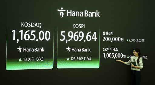 이날 코스피는 전 거래일보다 123.55포인트(2.11%) 오른 5969.64에 장을 마쳤다. 전날보다 0.13% 오른 5853.48에 개장한 코스피는 출발 직후 하락 전환했지만, 이후 상승 흐름을 되찾으면서 사상 최고치를 새로 썼다.