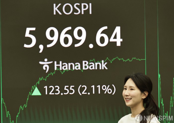 [서울=뉴스핌] 양윤모 기자= 24일 오후 코스피가 전장 종가보다 123.55 포인트(2.11%) 상승하며 5969.64로, 코스닥은 13.01 포인트(1.13%) 상승한 1165.00으로 거래를 마감한 가운데, 서울 중구 하나은행본점 딜링룸에서 직원들이 업무를 보고 있다. 서울외환시장에서 달러/원 환율은 전장 대비 2.80원 상승한 1442.80원에 주간거래를 마감했다. 2026.02.24 yym58@newspim.com