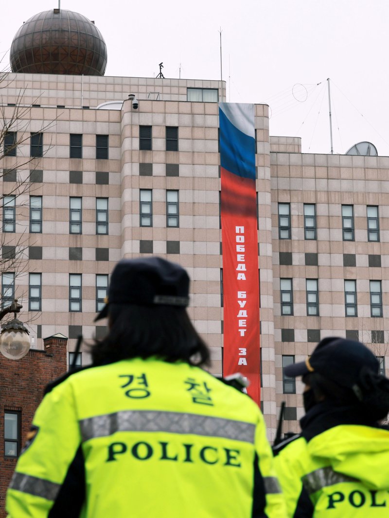 [파이낸셜뉴스] 주한 러시아 대사관이 "승리는 우리 것" 이라는 현수막을 서울 중구 소재 대사관 외벽에 내건 것으로 두고 국민의힘이 외교적 도발이라고 규정했다. 또한 외교부가 주한러시아대사를 불러 항의하는 초치(招致)를 해야 한다고 촉구했다.