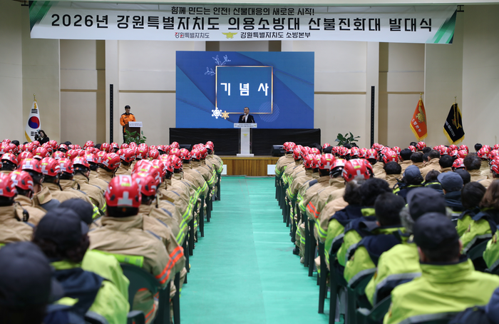 [스포츠서울ㅣ원주=김기원기자]강원특별자치도(도지사 김진태)는 2월 24일(화) 원주에서 김진태 도지사와 김시성 도의회 의장을 비롯한 도의원, 관계기관장, 의용소방대원 등 800여 명이 참석한 가운데 전국에서 두 번째 사례로 「강원특별자치도 의용소방대 산불진화대 발대식」을 개최했다고 밝혔다.