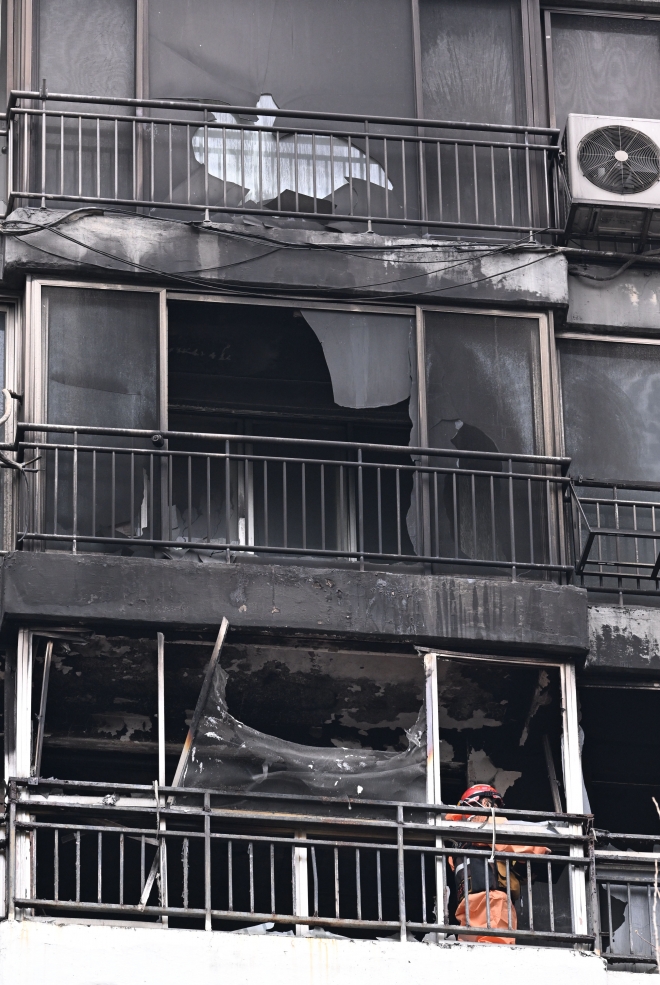 소방관계자가 24일 오전 화재가 발생한 서울 강남구 대치동 은마아파트에서 화재 원인 조사를 위한 합동 감식을 하고 있다. 2026.2.24 도준석 전문기자 |