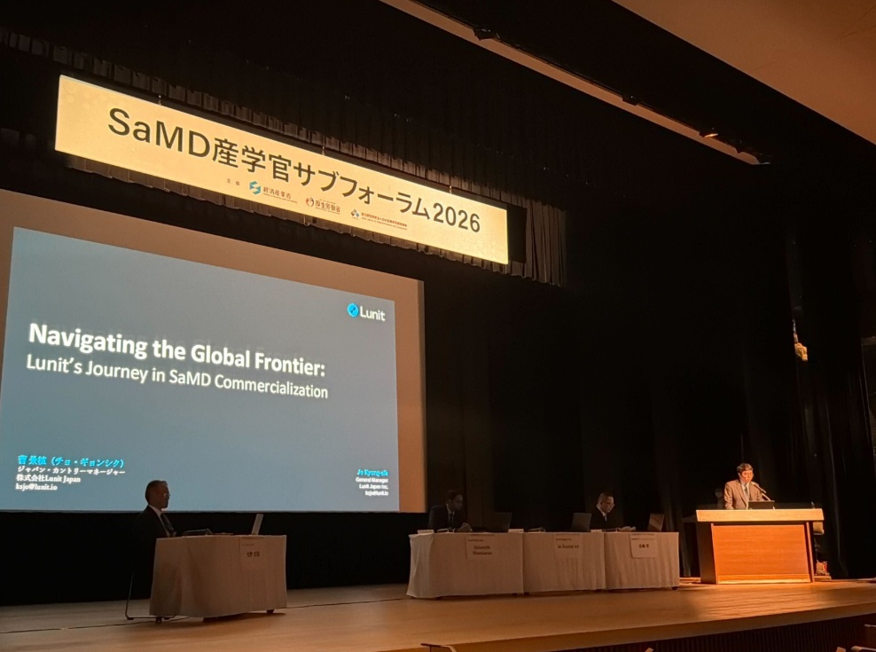 루닛은 일본 정부와의 협력도 확대하고 있다. 지난 16일 일본 경제산업성이 주최한 2026 SaMD 포럼에 글로벌 의료AI 기업 3사 중 하나로 초청받았다. 해당 포럼은 소프트웨어 의료기기 분야의 산·학 협력 방향을 논의하는 자리로, 일본 의료기기 업계 주요 관계자들이 참석했다.