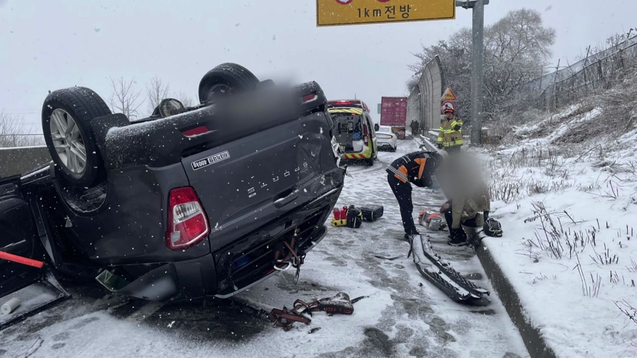 경찰은 SUV가 눈길에 미끄러진 것으로 보고 정확한 경위를 조사하고 있습니다.