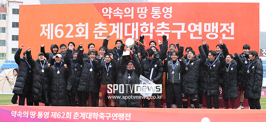 [스포티비뉴스=통영, 곽혜미 기자] '제62회 춘계대학축구연맹전' 한산대첩기 연세대와 경희대의 결승전이 24일 오후 경상남도 통영공설운동장에서 열렸다. 준우승을 거둔 경희대 선수들이 세리머니를 하고 있다.