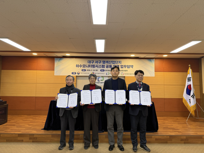 대구지방환경청(청장 조은희)은 2월 24일 대구공공시설관리공단 달서천사업소에서 서구청, 대구공공시설관리공단, 대구염색산단관리공단 등 3개 기관과 염색산업단지(이하 ‘염색산단’) 내 사업장의 폐수 무단 유출 사전 감시를 위한, ‘하수모니터링시스템 공동 운영 업무협약’을 체결한다고 밝혔다.