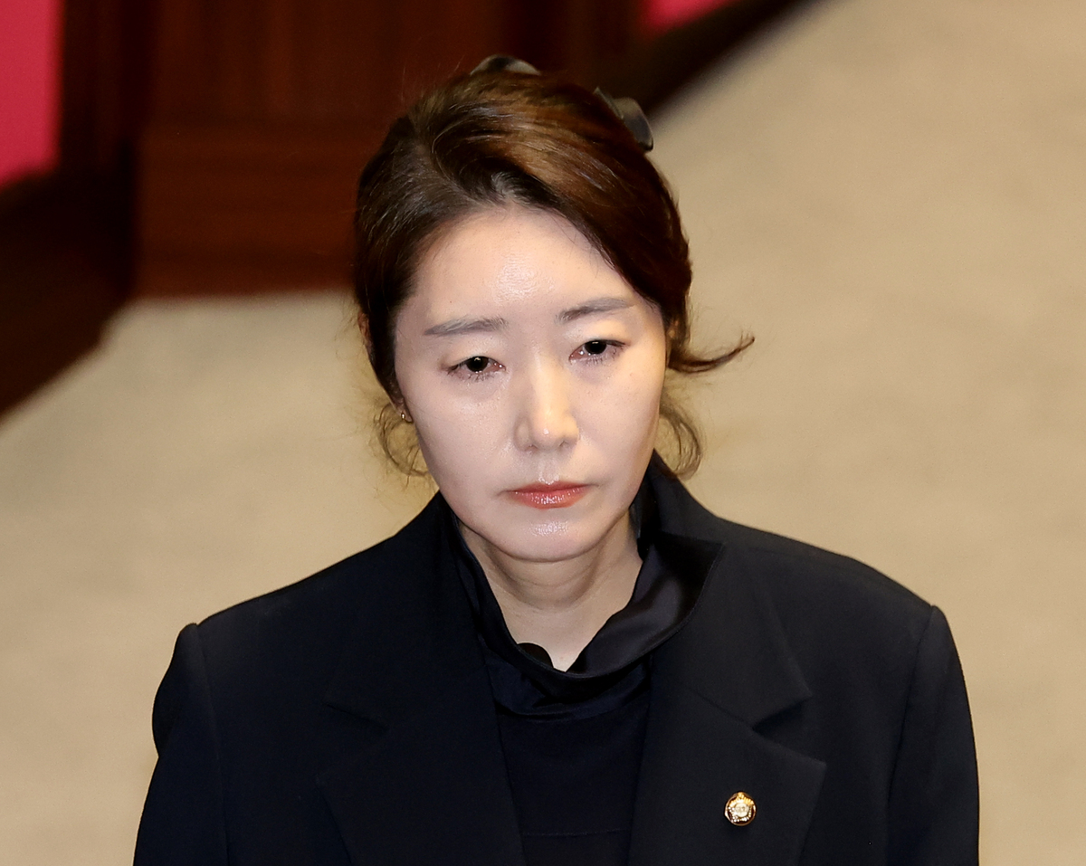 무소속 강선우 의원이 24일 국회에서 열린 2월 임시국회 제8차 본회의에서 체포동의안이 상정되자 신상발언을 한 뒤 발언대를 내려오고 있다. 연합뉴스 |
