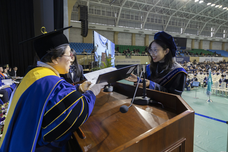 학위수여식은 993명 졸업생과 가족, 김종희 총장을 비롯한 교무위원 및 대학 관계자가 참석해 졸업생들을 축하하고 격려했다.