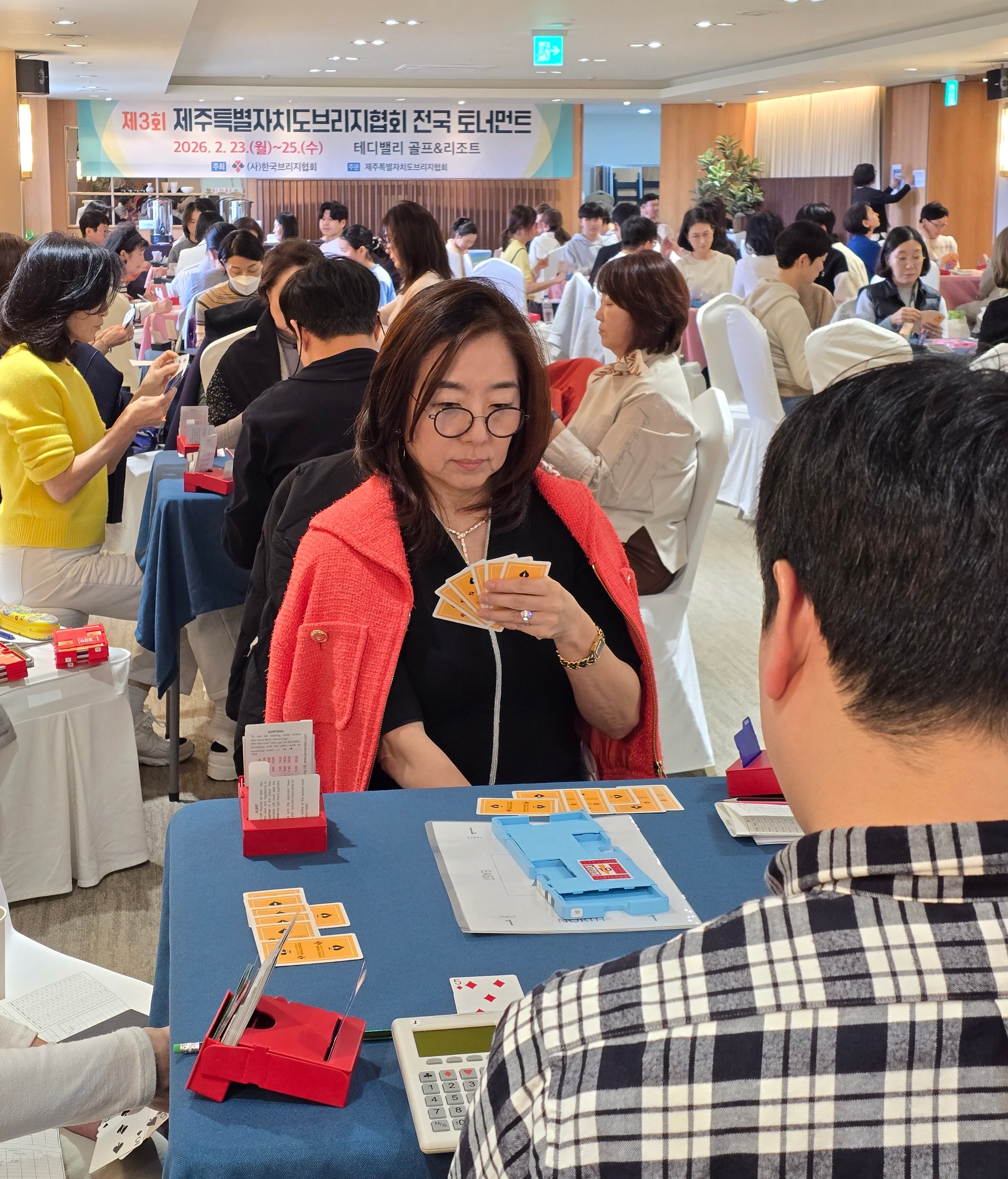 제주 서귀포시 테디밸리 골프&리조트에서 열린 제주특별자치도브리지협회 전국 토너먼트에 참가한 한국브리지협회 김혜영 회장. /한국브리지협회 |