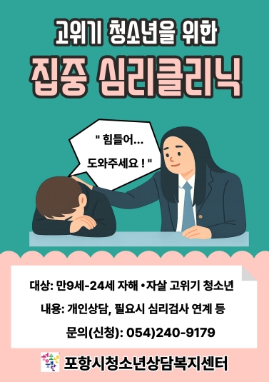사진은 고위기 청소년을 위한 집중 심리클리닉 포스터. (사진 = 포항시청소년재단) |
