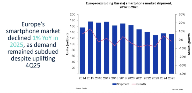 올해 전망에 대해서는 메모리 가격이 변수로 지목됐다. 비요르호브데 애널리스트는 "지난해 유럽은 전 세계 스마트폰 출하량의 10.8%를 차지했다"며 "가격 인상이나 공급 부족이 발생할 경우 어떤 업체가 유럽 시장을 우선순위에 둘지가 핵심"이라고 말했다.