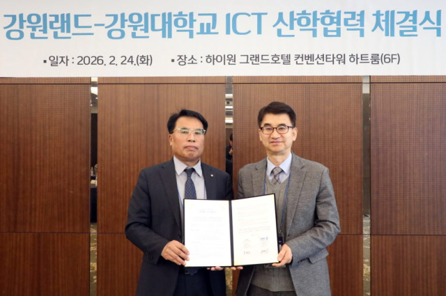 강원랜드(대표이사직무대행 최철규)는 24일 하이원리조트 호텔 연회장에서 강원대학교와 AI 융합시대에 대응한 ICT 기술 발전과 사이버 위협 대응 강화 위한 ‘ICT 산학협력 업무 협약’을 체결했다고 밝혔다.