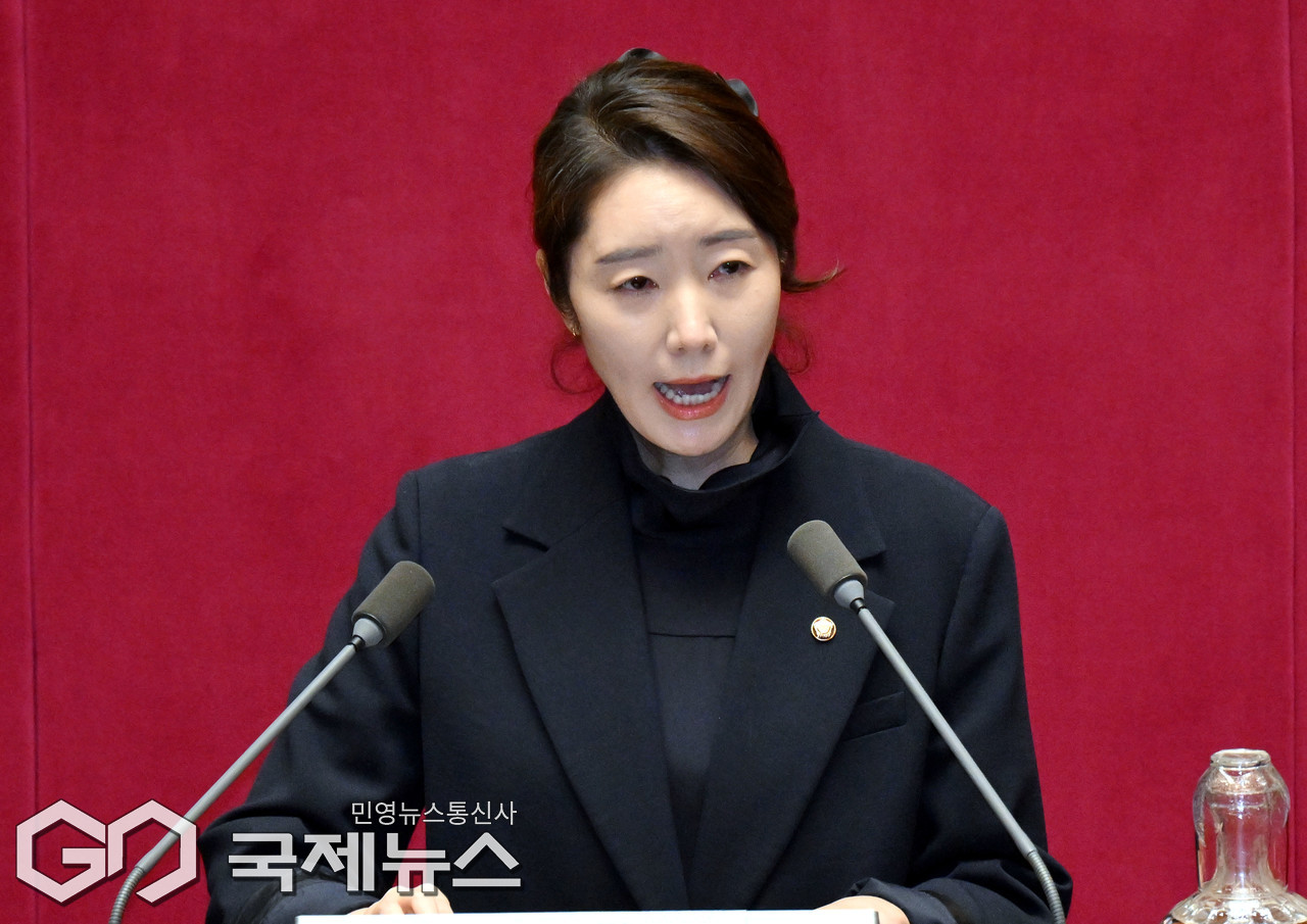 (서울=국제뉴스) 강선우 의원이 24일 오후 서울 여의도 국회에서 열린 본회의에서 자신에 대한 체포동의안 관련 신상발언을 하고 있다./사진=이용우 기자