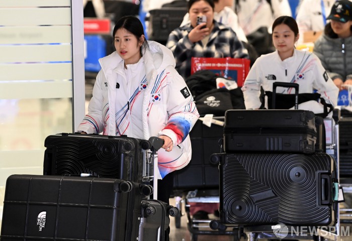[영종도=뉴스핌] 류기찬 기자 = 피겨스케이팅 이해인(왼쪽)과 신지아가 24일 밀라노·코르티나담페초 동계 올림픽을 마치고 인천공항을 통해 귀국하고 있다. 2026.02.24 ryuchan0925@newspim.com |